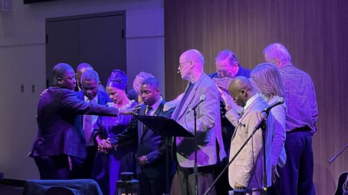 National Director Bill Hall braved the challenging weather travelling to BC, along with others from Quebec City, Ottawa, Edmonton, Texas and Michigan, to join our special celebration. After his sermon, Bill Hall ordained Job Alimasi Ayuba to the position of elder and commissioned him as Associate Pastor of our congregation. Job's long-time mentor and pastor from Malawi Silvester Nkosi testified of Job's long-term commitment to Jesus Christ and service in ministry, including leading youth groups and camps in Malawi as well as serving as deacon of the congregation in the Dzaleka Refugee camp where he lived with his wife Imani and their children. In July